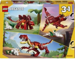Komplet LEGO Creator 3 v 1 Divji dinozaver prinaša otrokom in odraslim ljubiteljem dinozavrov veliko zabave in ustvarjalnosti. Iz istega seta kock preprosto preoblikujete realističnega velociraptorja z odpirajočo se čeljustjo, stegosaura s premičnim vratom in nogami ali pterozavra z nastavljivimi krili. Vsak model dopolnjujejo tematski elementi, kot so dinozavrova jajca, lobanja in rebrni koš, ki omogočajo napete zgodbe in efektne razstavne postavitve.