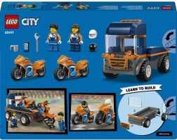 Odkrijte akcijski komplet za male dirkače: LEGO City tovornjak za prevoz motorjev prinaša ravno tovorno površino z rampo, 2 športna motorja, 2 minifigurici dirkačev s čeladami in masivne gumijaste pnevmatike za stabilno vožnjo. Idealno za otroke od 4 let zahvaljujoč začetniški kocki in preprostemu navodilu.