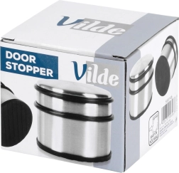 Eleganten in težek stoper za vrata iz nerjavnega jekla v srebrni barvi je idealen za stanovanje, hišo in pisarno. Visoka teža 1,1 kg zagotavlja stabilnost, zato bodo vrata ostala tam, kjer jih potrebujete. Gumijasti obroči po obodu ščitijo vrata pred udarci, gumijasto dno pa preprečuje drsenje in ščiti tla.