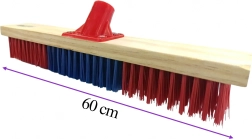 Zmogljiva ulična metla širine 60 cm s trdimi PVC ščetinami za hitro in učinkovito pometanje po pločnikih, parkiriščih, v halah in skladiščih. Trpežna lesena glava s plastičnim držalom in navojem 22 mm zagotavlja stabilno in enostavno pritrditev drža. Idealna za zahtevno čiščenje na zunanjih in industrijskih površinah.