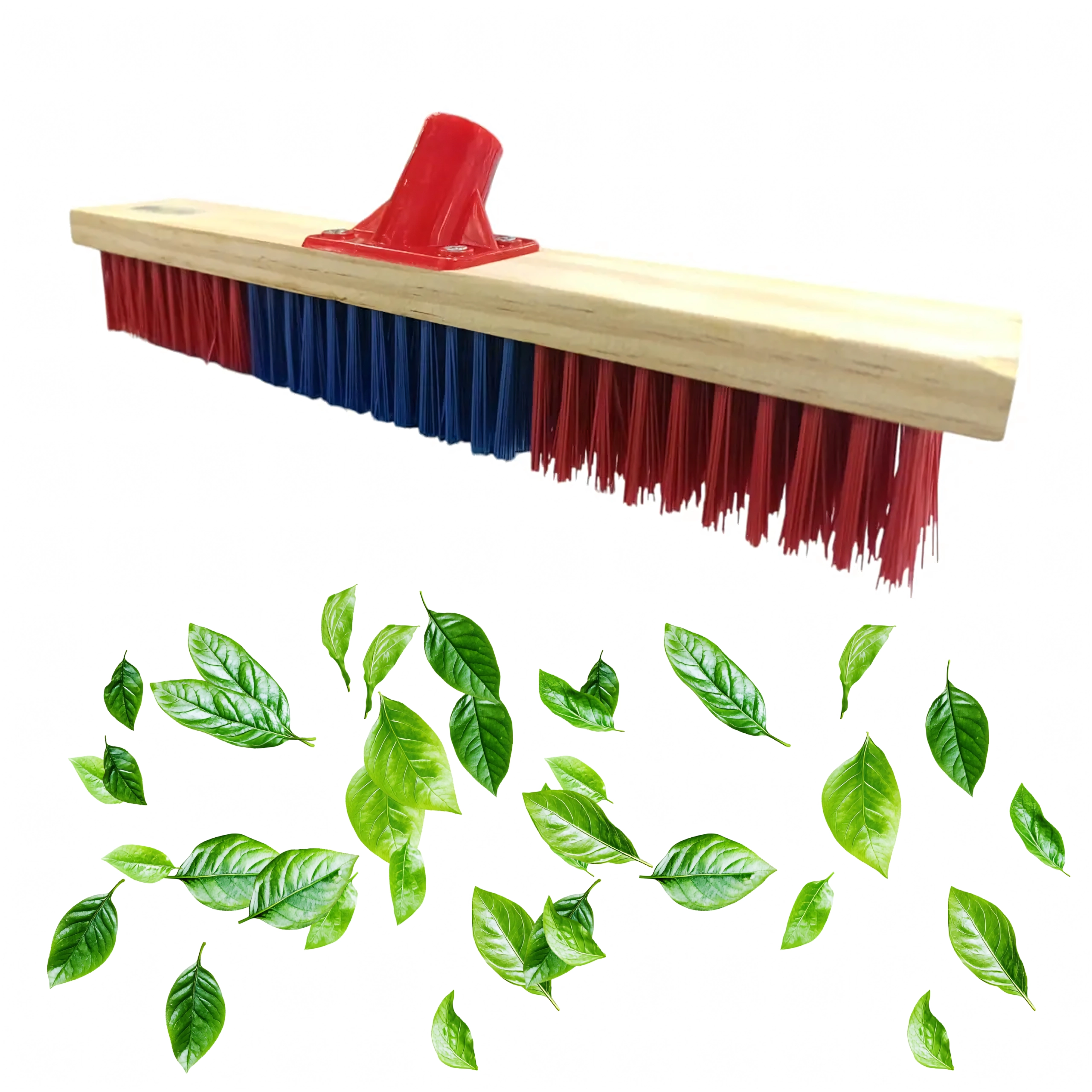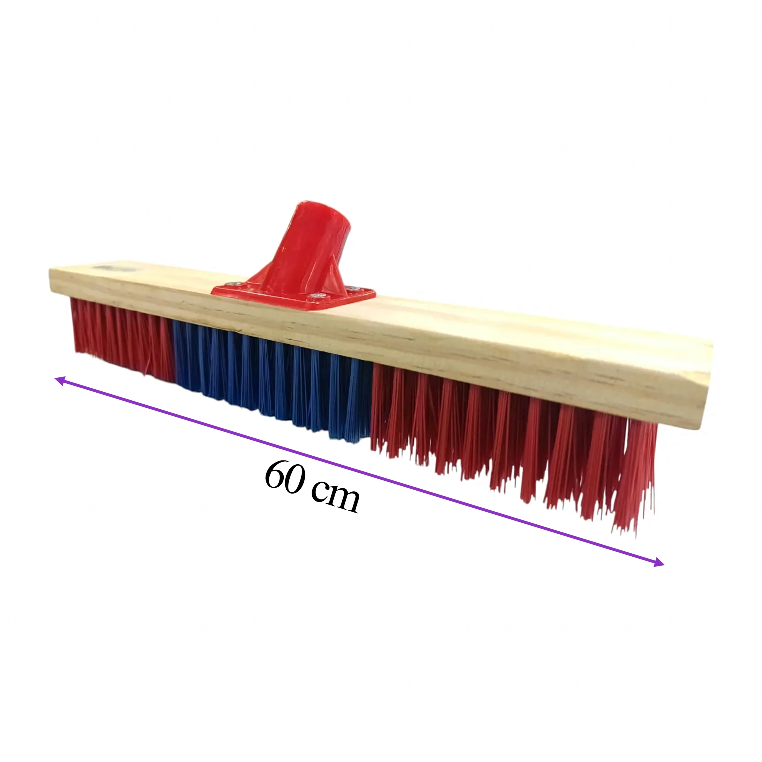 Robustna metla s širino 60 cm je zasnovana za intenzivno čiščenje velikih površin. Goste in trde sintetične (PVC) ščetine učinkovito pobirajo listje, prah in grobejšo umazanijo ter se dobro obnesejo tudi na mokrih površinah. Lesen blok s plastičnim adapterjem in navojem 22 mm drži držalo čvrsto na mestu in zagotavlja dolgo življenjsko dobo.