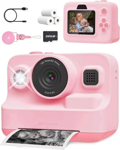 Rožnat otroški fotoaparat z vgrajenim tiskalnikom združuje fotografiranje, snemanje videa in zabavne mini igre v eni napravi. Zahvaljujoč tehnologiji termičnega tiskanja otroci dobijo svoje izpise takoj – brez črnila in tonerjev. Ne manjka 2,4" zaslon, 1080P video, 32GB kartica v paketu, polnjenje prek USB‑C in 3 rolice papirja za dolge ure ustvarjanja. Idealno za male raziskovalce na izletih, v šoli in na družinskih dogodkih. Takojšnji tisk, preprosto upravljanje, vzdržljiva zasnova in bogata oprema v ceni.