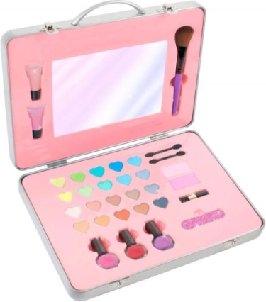 Ta kozmetični set je sanje vsake male dame. Ponuja vse potrebno za ustvarjanje čudovitega make-upa kar doma. Stilni kovček vsebuje: