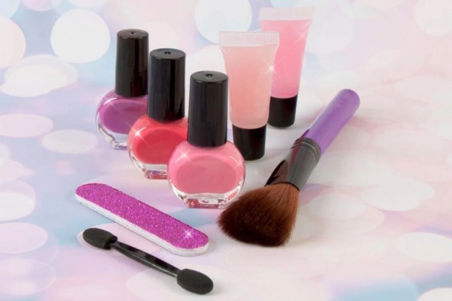 Odkrijte kozmetični set v elegantnem kovčku, poln ličil, lakov za nohte in drugih dodatkov za popoln videz nohtov in ustnic, idealen za dekleta od 8 let dalje.