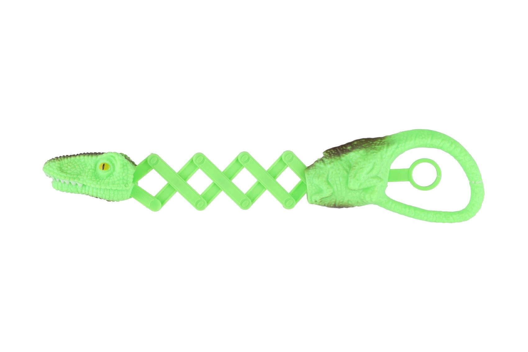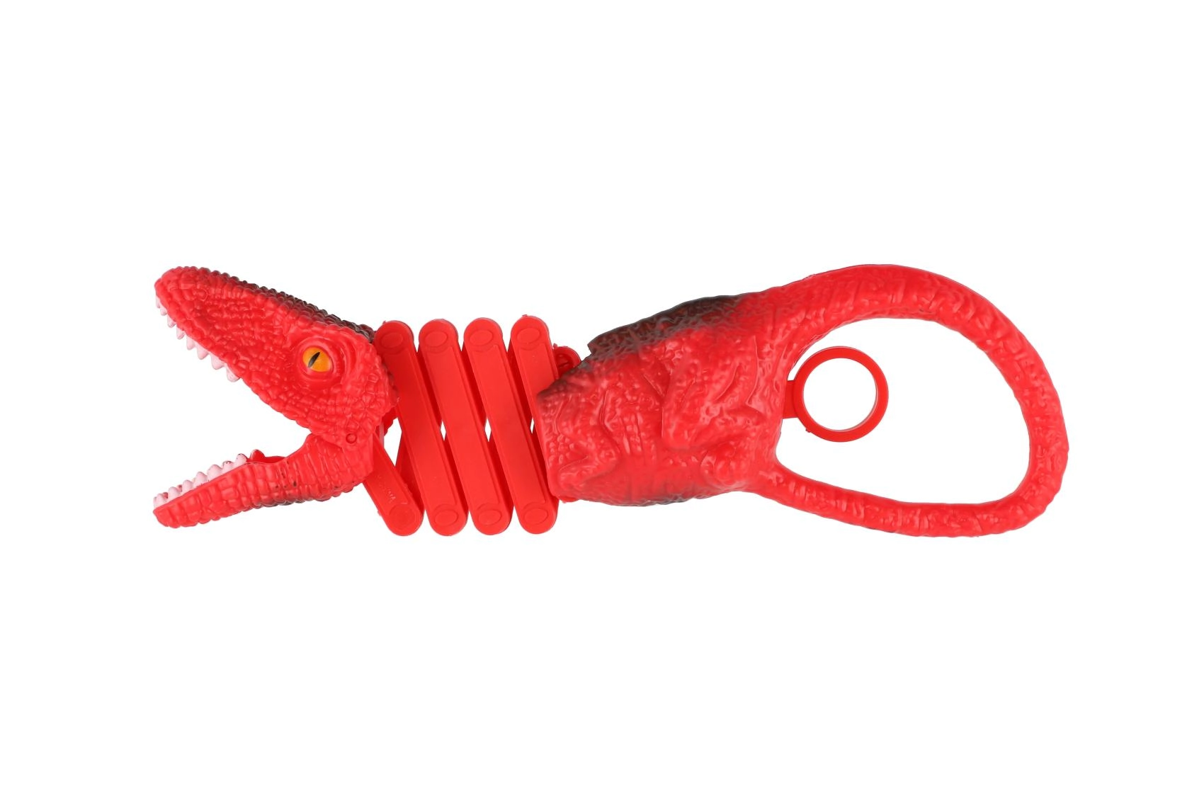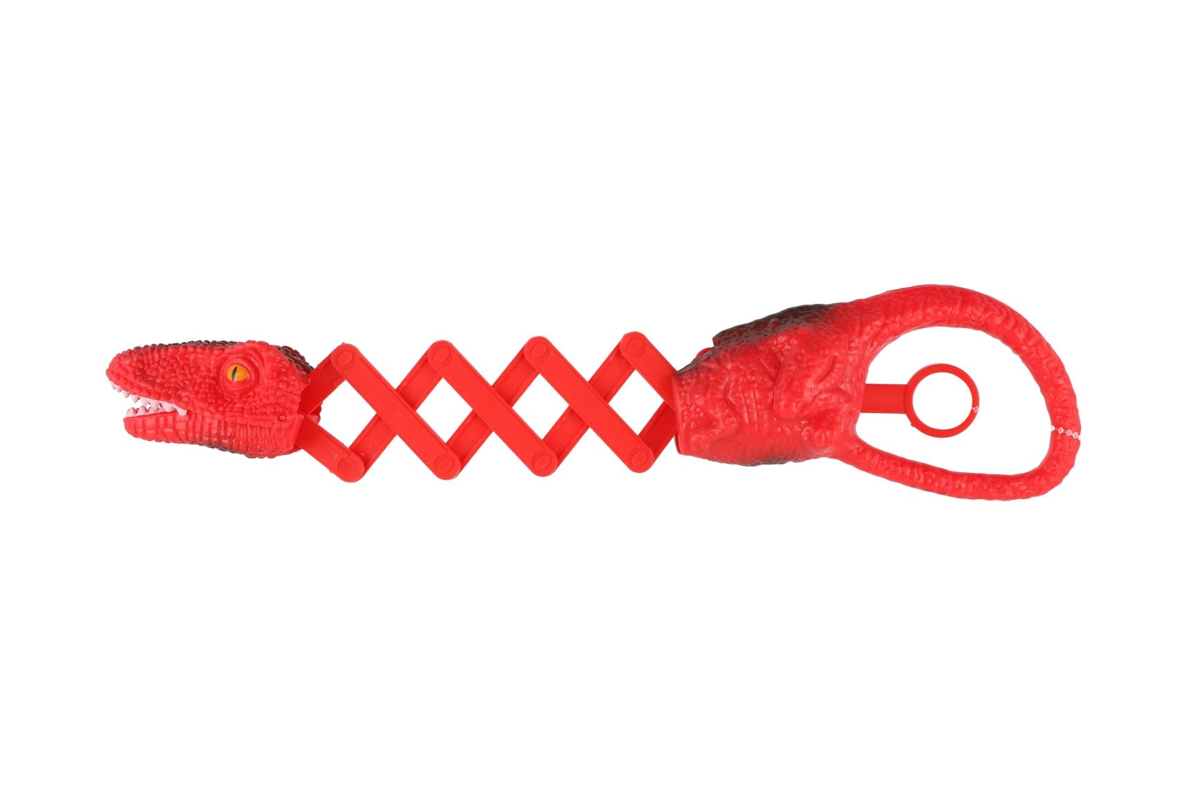 Odkrijte akcijsko zabavo s teleskopskimi kleščami v obliki dinozavra. Le potegnite za obroček na repu in gobec plenilca se zapre – idealno za pobiranje listkov, kock ali drobnih igrač. Lahka in trpežna zasnova je prilagojena otroškim rokam in podpira razvoj motorike ter igrivo domišljijo.