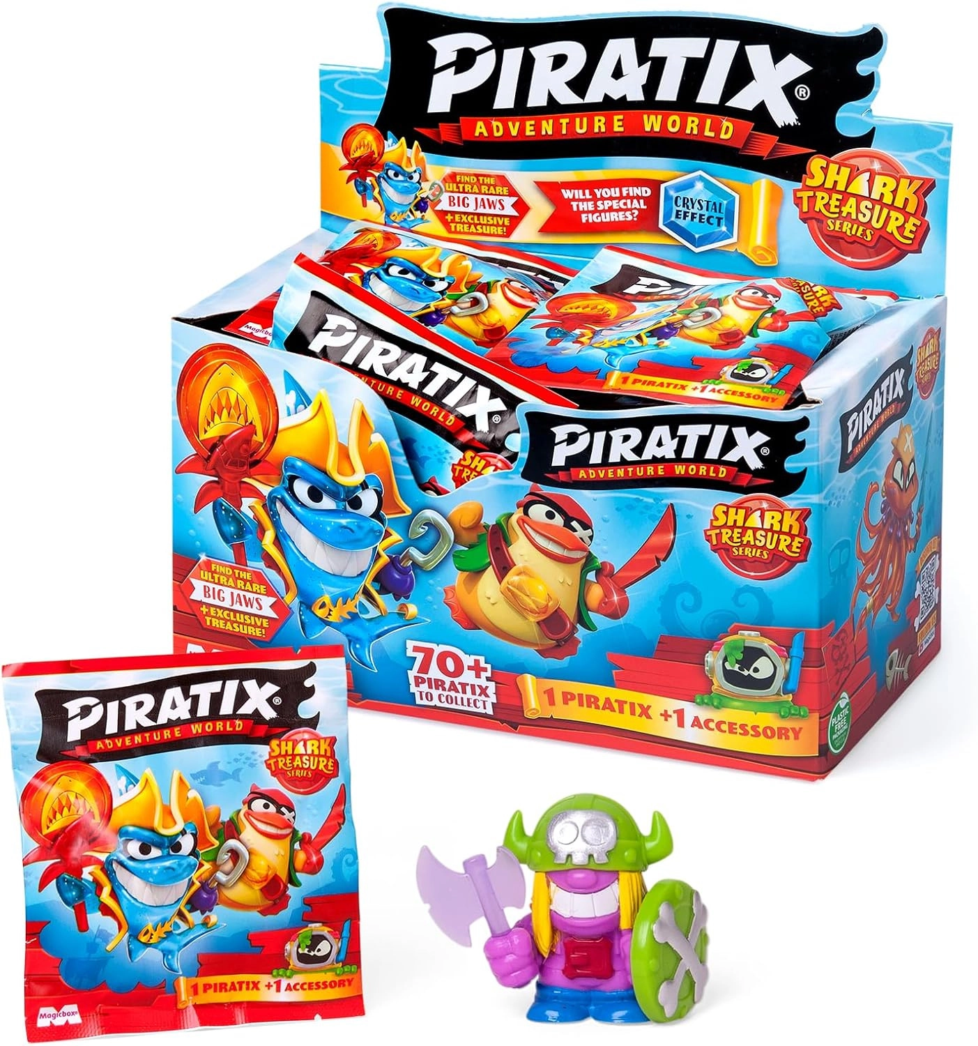 Podajte se v pustolovski svet Piratix Adventure World – Shark Treasure, kjer čakajo skriti zakladi, piratski dvoboji in napetost na vsakem koraku. Vsaka vrečka vsebuje presenetljivo figurico in tematski pribor, kar jo naredi za odličen zbirateljski kos za male raziskovalce.
