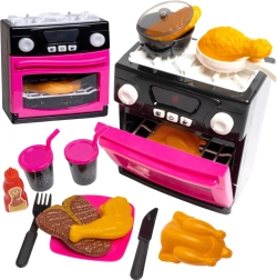 V kompletu so pribor, ponvice, steklenička z omako, pijače in različna živila za neskončne kulinarične prizore.