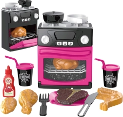 Ta rožnata kuhinjica s plinskimi gorilniki in funkcionalno, odpirajočo se pečico spodbuja domišljijo in razvija fino motoriko. Po pritisku na gumb se aktivirajo luči in realni zvoki kuhanja, ki verno posnemajo pravo kuhinjo. Idealna za igro doma ali skupne prizore s prijatelji.