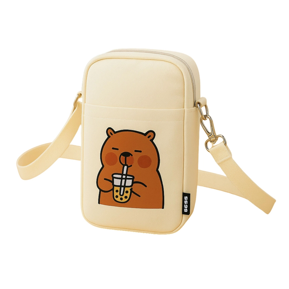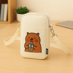 Z nastavljivim trakom lahko dolžino preprosto prilagodite svoji postavi. Glavni žep z zadrgo varno shrani najnujnejše, medtem ko sprednji odprti žep omogoča hiter dostop do malenkosti. Sprednji potisk ljubke kapibare z bubble tea daje torbici izviren videz, ki bo navdušil tako otroke kot odrasle.