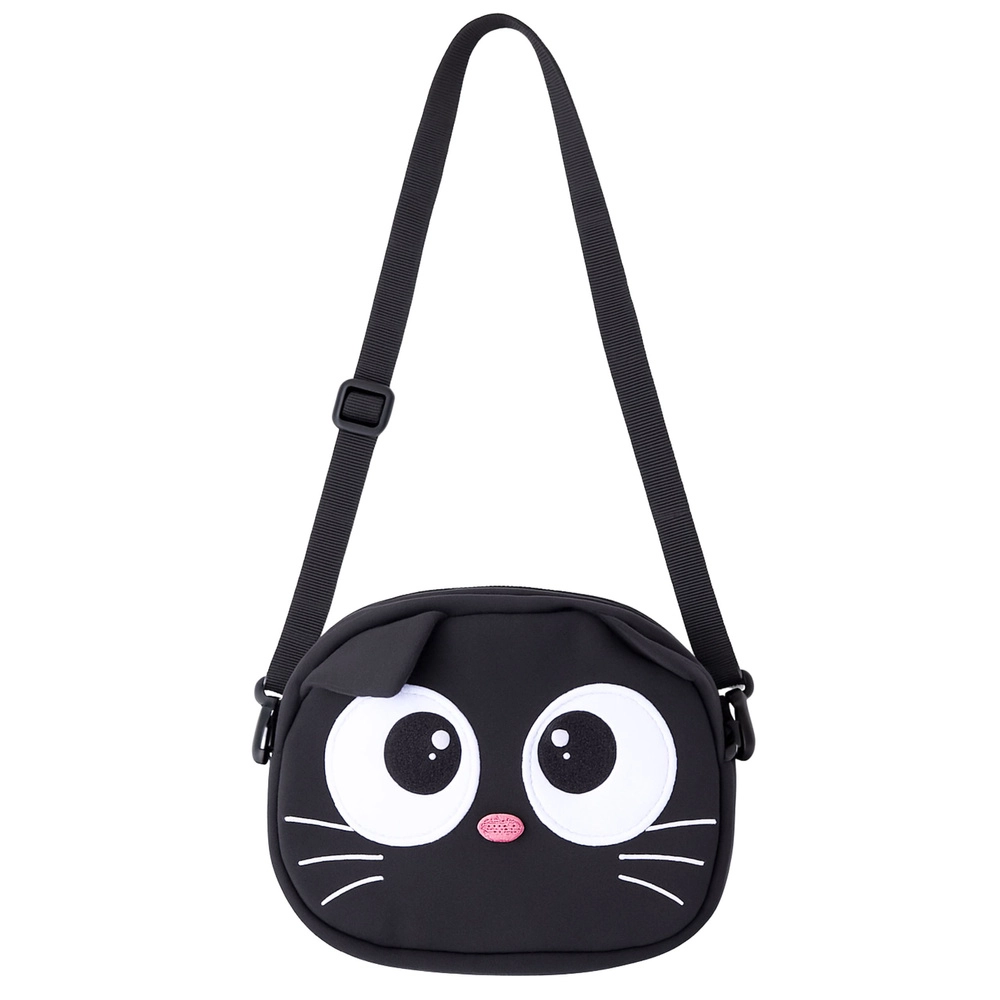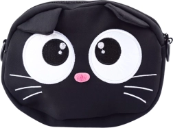 Izrazit mačji obraz z velikimi očmi, brčicami in ušeski naredi torbico za vsak dan trendovski modni dodatek.