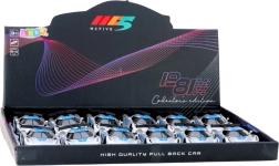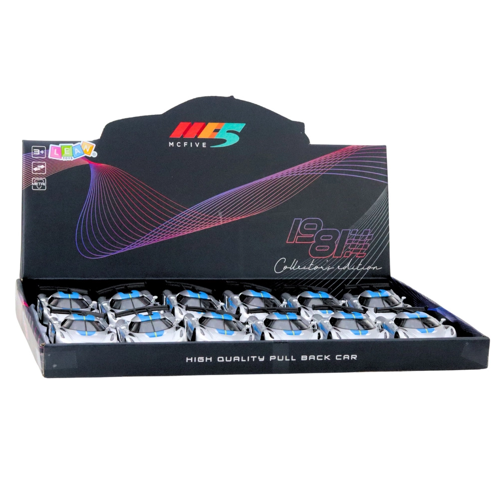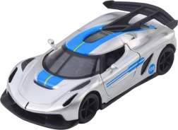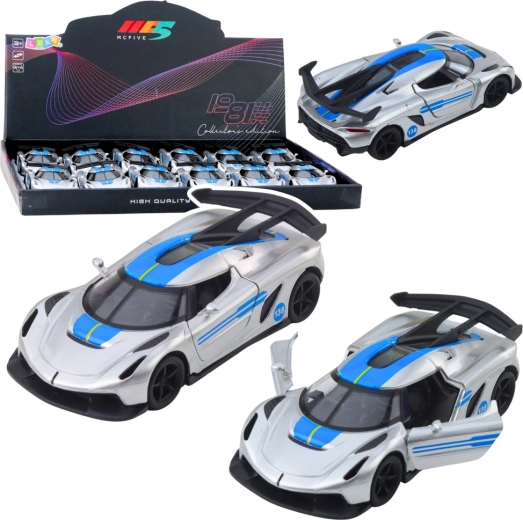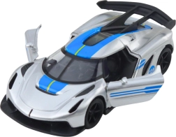 Odkrijte kompaktni dirkalni avtomobilček, ki izstopa z vzdržljivo kovinsko karoserijo in modernim športnim videzom. Dovolj je, da ga rahlo potegnete nazaj, in zahvaljujoč pull-back pogonu odhiti naprej. Odpirajoča se vrata dodajo avtentičnost in vabijo k ogledu podrobne notranjosti.