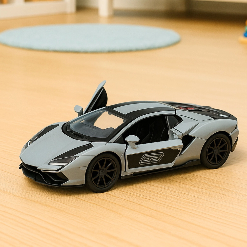 Slogovno kovinsko dirkalno avtomobilček v merilu 1:32 bo navdušilo male in velike ljubitelje hitrih koles. Ponuja čvrsto kovinsko karoserijo, odpirajoča se vrata za bolj realistično igro in napet vzmetni (pull-back) pogon, zahvaljujoč kateremu le potegneš nazaj, spustiš in odbrzi v dirko. Kompaktne dimenzije in športni dizajn v sivi barvi s črnimi detajli ga delajo idealno igračo in zbirateljski kos.