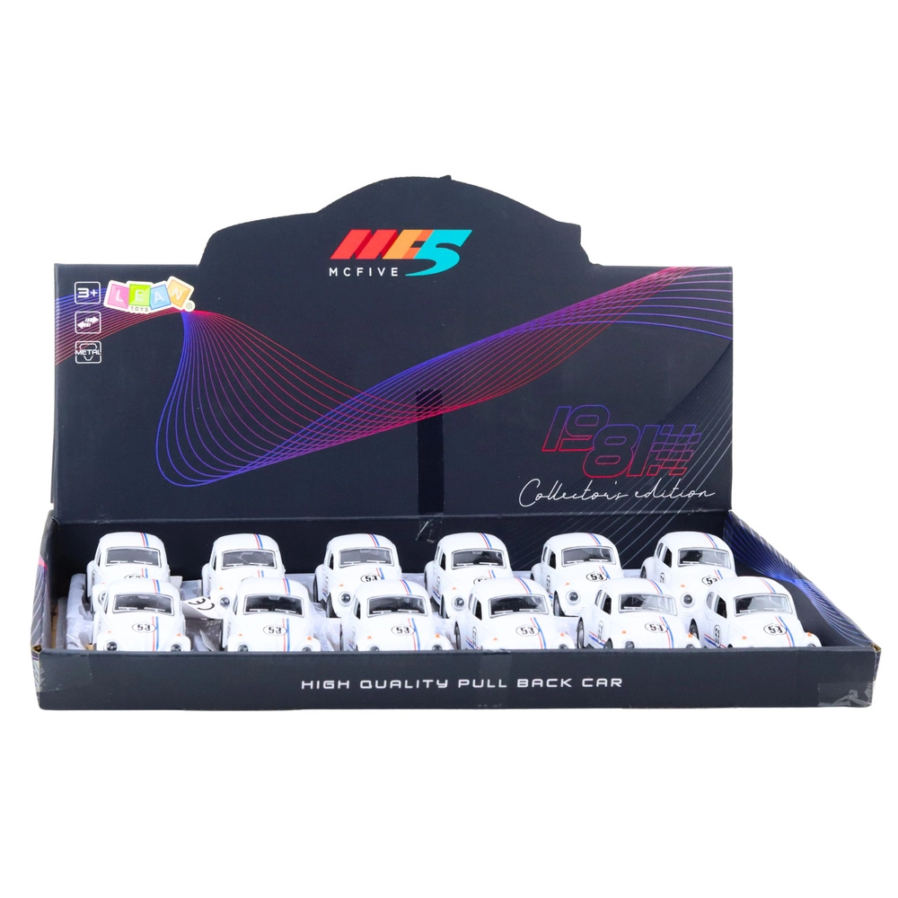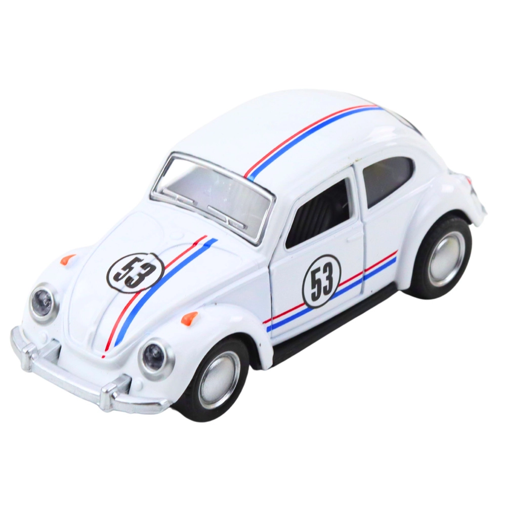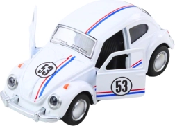 Slogovit kovinski model, navdihnjen z legendarnih »hroščem«, v merilu 1:32 bo navdušil otroke in zbiratelje. Ponuja kovinsko karoserijo, napeti pull-back pogon za hitro vožnjo, odpirajoča se vrata in natančno dodelavo v elegantni beli barvi.