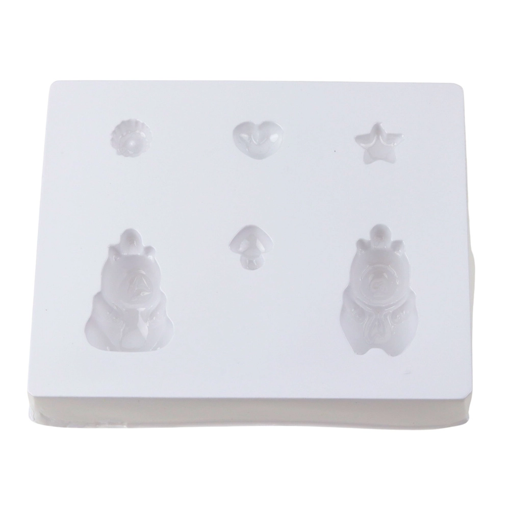 Prožen kalup z motivi, kot so medvedek, srce, zvezda in gobica, omogoča enostavno odstranjevanje in različne rezultate pri enem ulivanju.