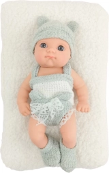 Punčka je oblečena v sivo-bele pajacke z usklajenimi nogavičkami in mehko kapico z ušeski. V pakiranju ne manjka debelejši in mehak košček odeje, s katerim lahko otroci dojenčka pokrijejo, zibajo in uspavajo. Premični udi in glavica omogočajo enostavno spreminjanje položajev – posesti, položiti ali preobleči, kar podpira kreativnost, fino motoriko in igro vlog.