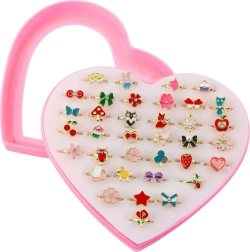 Ta pisani set prstančkov bo razveselil vse male gospe. Zahvaljujoč nastavljivemu premeru se prstančki zlahka prilagodijo otroškim prstkom ter zagotavljajo udobno in varno nošenje. Prozoren pokrovček srčkastega etuija omogoča pregledno shranjevanje in hitro izbiro najljubših motivov.