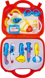 Zabaven zdravniški komplet v praktičnem kovčku bo razveselil vse male zdravnike. Vsebuje varna plastična orodja za igro pregleda, kot so stetoskop z zvočnimi učinki, brizga, termometer in drugi dodatki. Zaradi prenosnega kovčka je vse pregledno shranjeno in pripravljeno za na pot. Spodbuja empatijo, kreativnost in fino motoriko ter pomaga otrokom bolje spoznati okolje ordinacije.