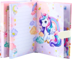 Dnevnik z motivom samoroga je odlična izbira za otroke, ki želijo svoje misli ohraniti na varnem. Zahvaljujoč kombinacijski ključavnici z možnostjo spremembe kode ima otrok svojo zasebnost povsem pod nadzorom. Po odprtju se oglasi radostna melodija, ki popestri vsak zapis.