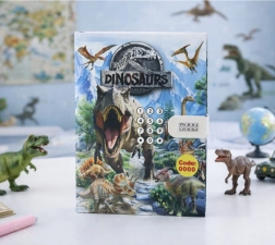 Slogovit otroški spominski dnevnik z motivom dinozavrov ponuja ključavnico s številčno kodo, veselo melodijo ob odprtju in barvne strani z ilustracijami. Odličen za pisanje skrivnosti, risanje in razvijanje ustvarjalnosti – varen, zabaven in idealno darilo za male ljubitelje prazgodovinskega sveta.