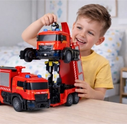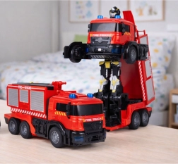 Interaktivni gasilski voz, ki se na ukaz spremeni v robota, prinaša otrokom dvojno zabavo. Daljinsko upravljanje, samodejna transformacija, svetlobni in zvočni učinki ter pršenje vode ustvarjajo realistične reševalne misije. Trpežna zasnova, gumijasta kolesa in enostavno upravljanje spodbujajo ustvarjalno igro in razvoj motorike.