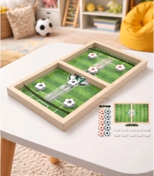 Ta spretnostna namizna igra s temo nogometa je zasnovana za hitre in napete dvoboje dveh igralcev. Igralci izstreljujejo figurice s pomočjo elastičnih gumic in poskušajo nasprotniku zabiti gol. Vsak poteza preveri natančnost, reflekse in taktiko – idealno za otroke in odrasle.
