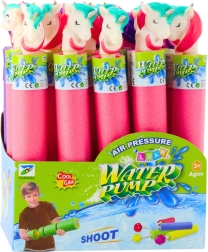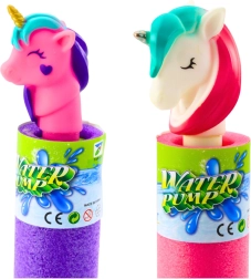 Vodna pištola z ročno črpalko je izdelana iz mehke pene za udoben oprijem in varno igro tudi za mlajše otroke. Dovolj je, da konico potopite v vodo, povlečete in nato izstrelite močan curek – brez baterij in zapletenega vzdrževanja. Pisana figurica samoroga na ročaju doda čaroben videz in spodbuja skupinsko igro.