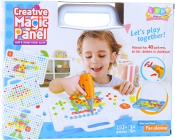 Kreativni sestavljivi set za otroke od 3. leta ponuja do 151 delov za neskončno ustvarjanje. Otroci lahko privijajo koščke na montažno ploščo z uporabo varnega plastičnega vrtalnika, razvijajo fino motoriko, logično razmišljanje in kreativnost. Vse je shranjeno v praktičnem kovčku za enostavno prenašanje in pospravljanje.