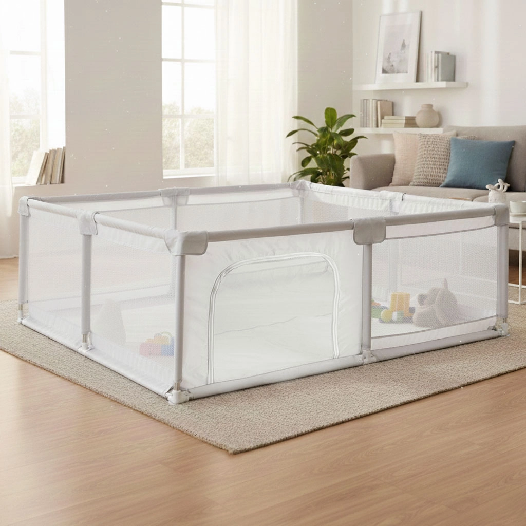 Iščete varno in prostorno mesto, kjer se lahko vaš otrok igra in razvija? Otroška ograja ECOTOYS ponuja velikodušen prostor, odlično stabilnost in odličen nadzor zahvaljujoč zračnim mrežastim stenam. Idealna je kot suhi bazen, igralni kotiček in umiritvena cona – doma, na terasi in na poti.