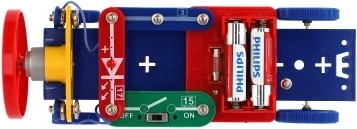 Sestavite preprosto vozilo z motorčkom in stikalom, ki se zaradi propelerja požene. Otroci takoj vidijo, kako električno vezje spravi model v gibanje.