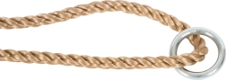 - Varno obešanje: robustna vrv s kovinskim očescem in drsnim elementom za zanesljivo regulacijo dolžine.