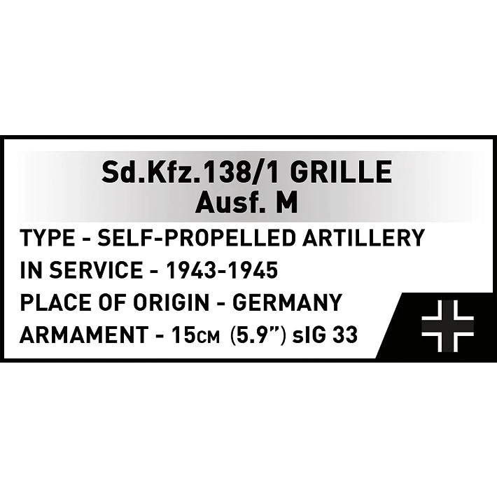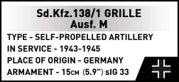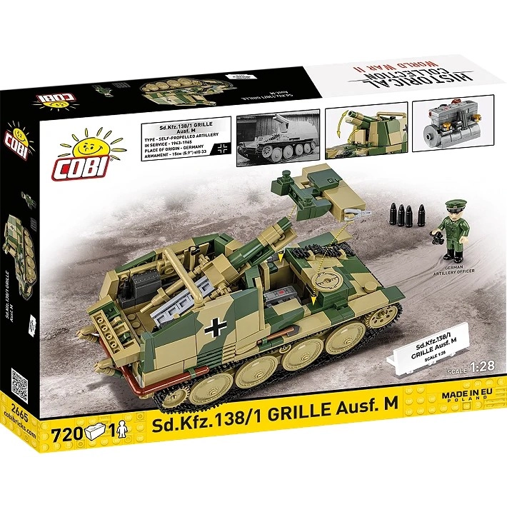 Odkrijte legendarni »Ščurek/Grille«, samohodno topniško orožje na podvozju Panzer 38(t), v natančni izvedbi iz kock COBI. Precizni ulivki s kakovostnimi tiski, kamuflaža, ploščica z imenom in avtentične proporce naredijo model privlačen zbirateljski kos in odličen izobraževalni komplet.