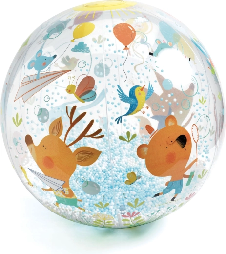 Napihljiva žoga s kroglicami znamke DJeco otrokom nudi veliko gibanja in veselja. Prozoren ovoj skriva drobne kroglice, ki pri metanju in kotaljenju ustvarjajo igriv učinek in spodbujajo otroke k aktivnemu gibanju.