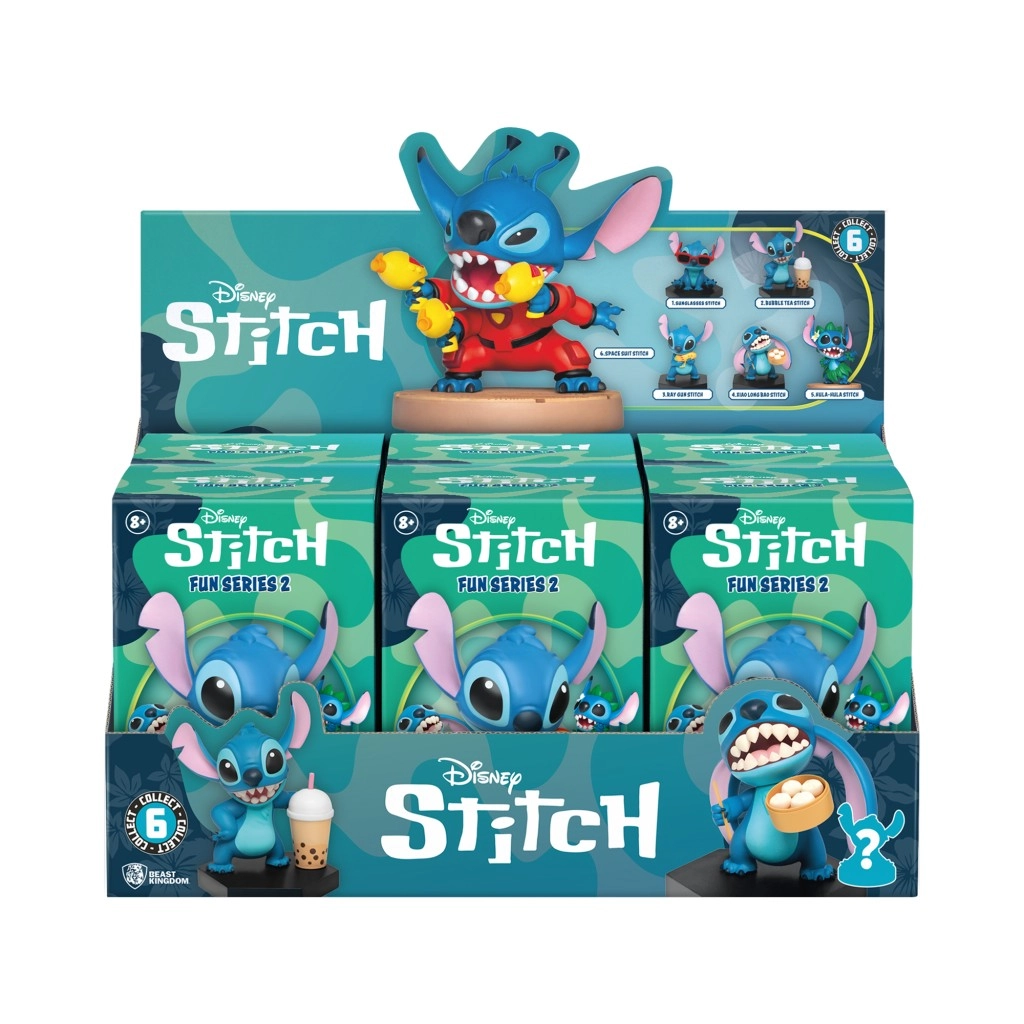 V seriji najdete šest edinstvenih različic – na primer Stitch z mehurčkastim čajem, v rdečem kostumu s piščančki ali s košarico hrane. Zaradi kakovostne izdelave in stabilnega podstavka so figurice odlične za na polico, v vitrino ali kot stilsko darilo.