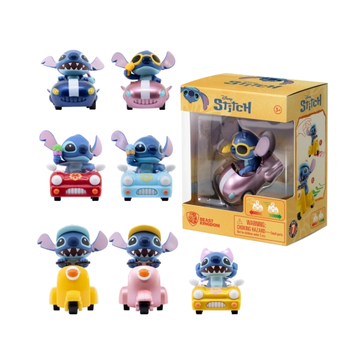 Kolekcija Stitch Zoom Hero prinaša priljubljenega junaka STITCH v igrivih pozah na različnih mini vozilih. Vsak kos izstopa z izrazitim barvnim videzom in drobnimi dodatki, kot so sončna očala ali cvetlični okraski. Figurice so pakirane v prozorni plastični škatlici z izrazitim dizajnom, ki izdelek zaščiti in hkrati odlično predstavi vsebino.
