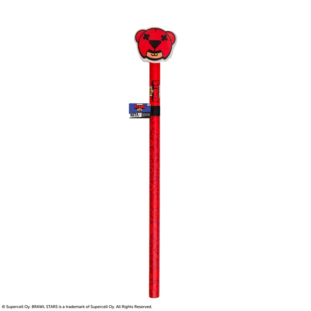Ta licencirani svinčnik BRAWL STARS v živo rdeči izvedbi združuje praktično pisalo z igrivim zbirateljskim dizajnom. Na vrhu je nameščena velika radirka v obliki medvedje glave, ikoničnega simbola lika Nita, dopolnjena z detajlnimi črnimi elementi za maksimalen vizualni učinek.
