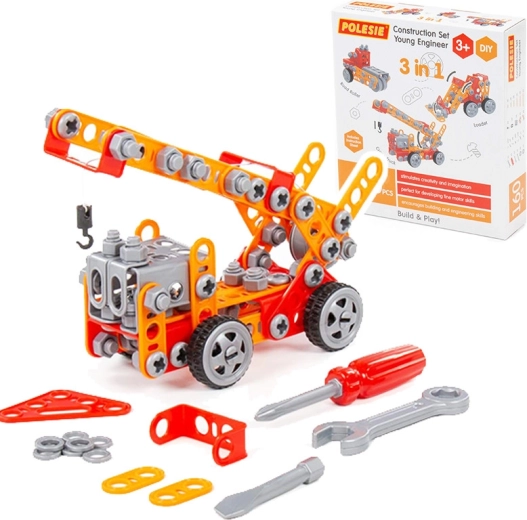 Konstrukcijski set Mladi inženir 160 delov podpira fino motoriko, logično razmišljanje in potrpežljivost. Zahvaljujoč perforiranim nosilcem, spojkam, kolesom ter priloženemu izvijaču in ključu lahko otroci ustvarjajo funkcionalne modele z vrtečimi se kolesi in stabilno konstrukcijo. Odličen za prvo spoznavanje z osnovami mehanike in gradnje.