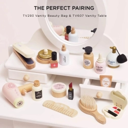 Ta modni frizerski set je idealen kot prvi otroški frizerski salon. Otroci lahko posnemajo salonske postopke, ustvarjajo pričeske za punčke ali prijatelje ter razvijajo svojo domišljijo. Zaradi trpežne izdelave iz FSC lesa prenese intenzivno igro in je varen za male ročice.