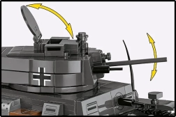 Odpirajoče se lopute, nastavljiv top, snemljiva kupola in pokrov motorja ter realistične gosenice za odlično doživetje sestavljanja in igre.