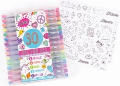 Odkrijte zabavo z našim setom 30 gel pisal MAKE IT REAL, ki so idealna za risanje, barvanje in pisanje v beležkah ali beležnicah. Ta zbirka vključuje: