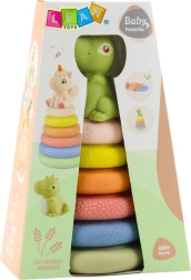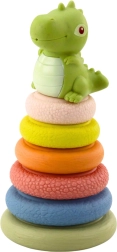 Ta mehka gumijasta piramida iz ekoloških materialov otrokom prinaša bogato senzorično izkušnjo. Šest barvitih obročkov z različnimi teksturami in površinami pomaga razvijati tip, osredotočenost in radovednost. Zlaganje obročkov na paličico podpira razvoj fine motorike in koordinacijo gibov.