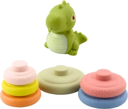 Varna izvedba z zaobljenimi robovi in prijetno mehkim materialom je prijazna do otroških rok. Figurico dinozavra je mogoče namestiti na vrh, ob pritisku pa odda pisk, ki motivira k nadaljnjemu raziskovanju. Elegantna embalaža ga naredi za odlično darilo za dojenčke.