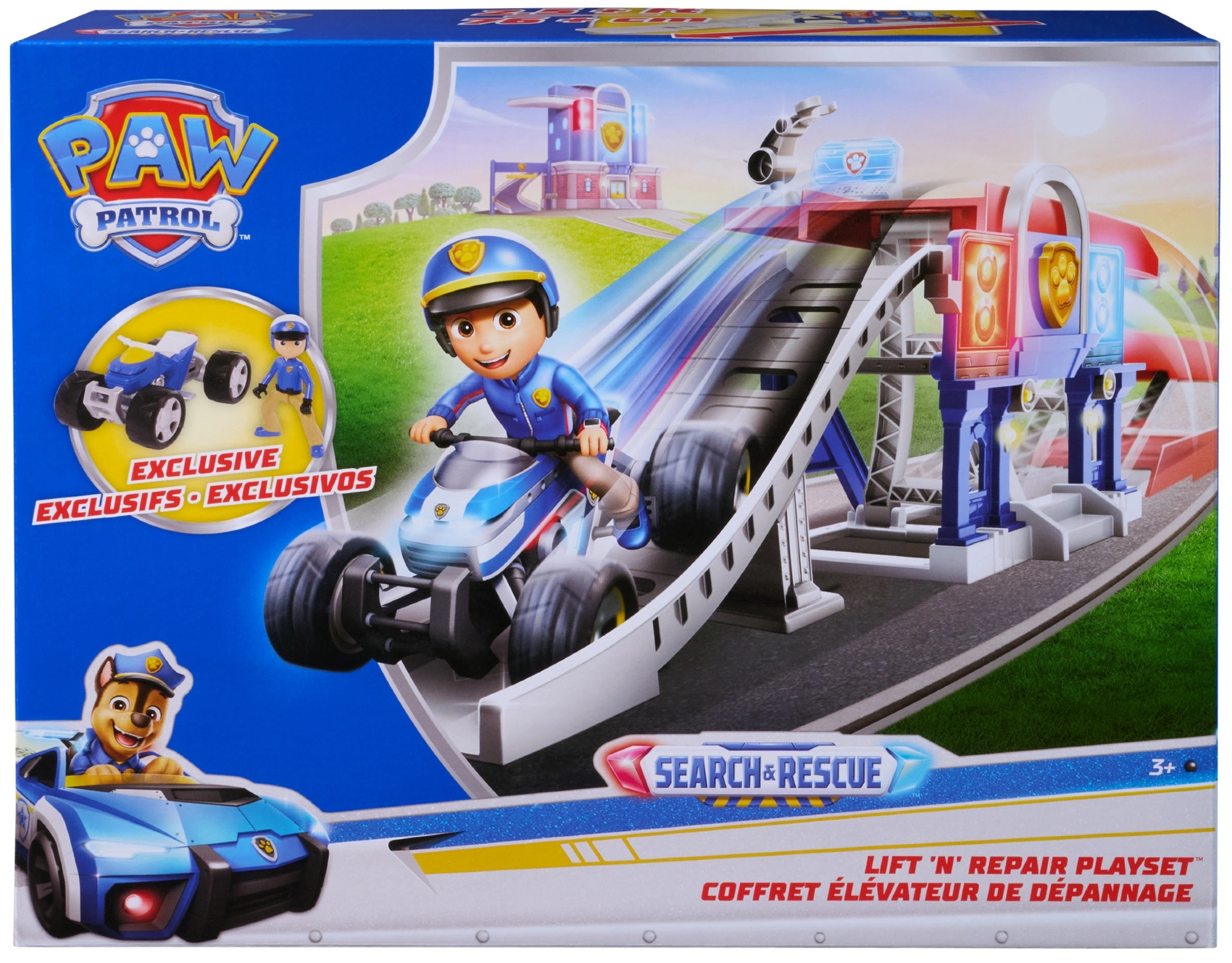 Vključena je ekskluzivna figurica Rydera v opremi Search & Rescue ter verno izdelan ATV z delujočimi kolesi.