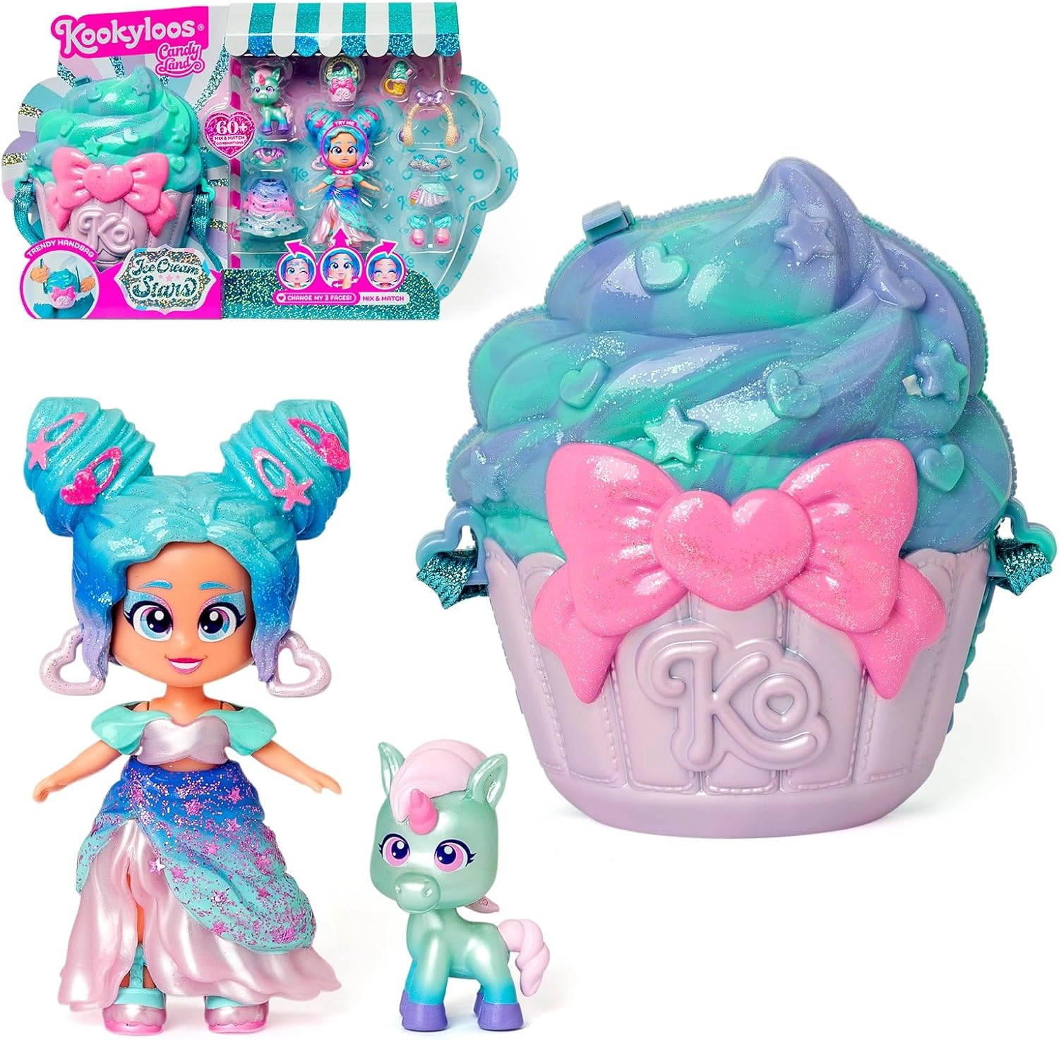 Figurica KookyLoos Candy Cream Stars prinaša igrivo kombinacijo stila in domišljije. Pastelne barve, motiv sladoleda in zvezdic ter možnost spreminjanja videza spodbujajo otroško domišljijo in ustvarjalnost. Zahvaljujoč priročni torbici v obliki kolačka (cupcake) lahko otroci svojo najljubšo figurico vzamejo s seboj kamor koli.