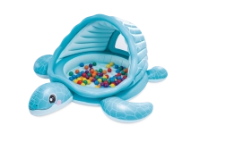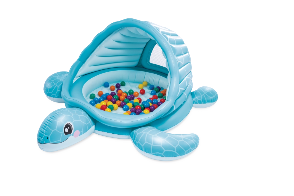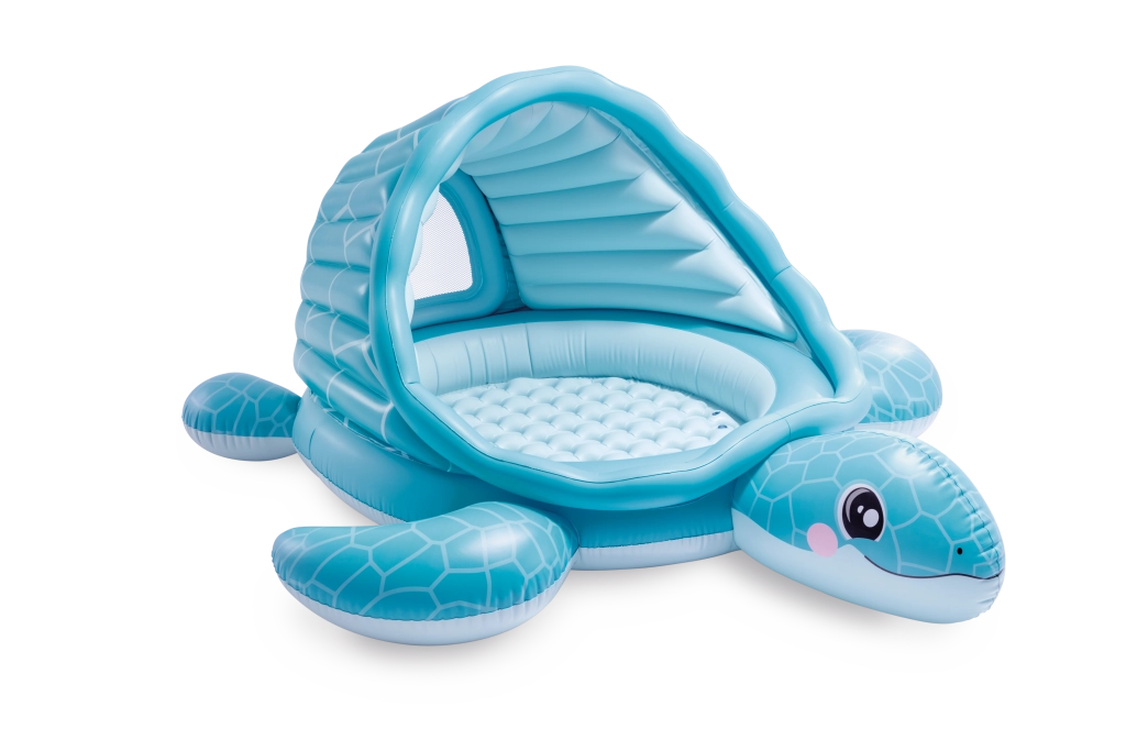 Prisrčen napihljiv bazenček v obliki želve s praktično strešico otrokom nudi varno in udobno mesto za poletno igro. Ima mehko napihljivo dno za udobje, senčilno strešico z mrežastimi okenci za zračenje in nadzor, lahko pa ga uporabite tudi kot bazenček za žogice. Trpežen PVC material ter enostavno napihovanje in izpust iz njega naredita idealen dodatek za vrt ali teraso.