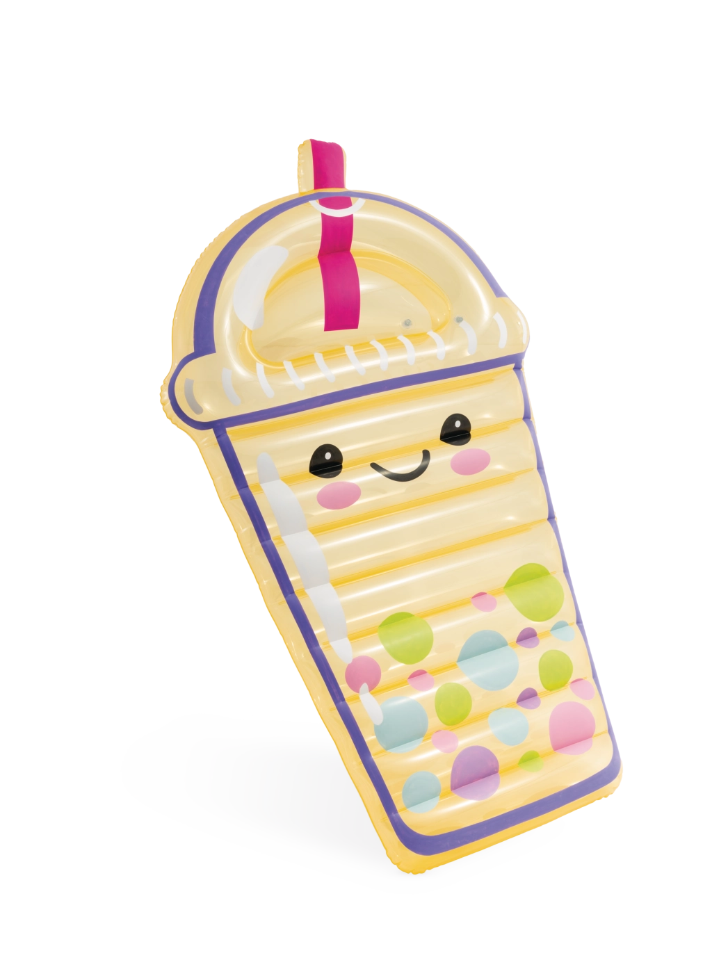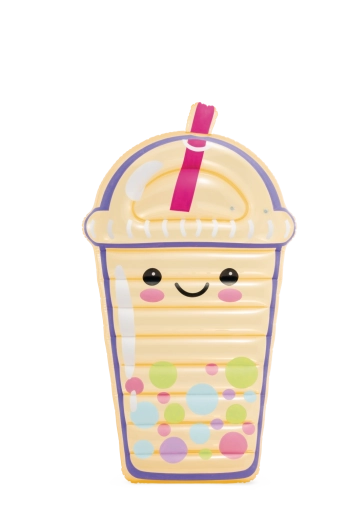 Uživajte v poletju v velikem slogu z napihljivo blazino v obliki bubble tea napitka. Izdelana je iz kakovostnega PVC in ponuja udobno ležanje na vodi, igriv dizajn z nasmejanim obrazom ter prosojne elemente. Idealna za bazen in plažo – spoj zabave, udobja in izvirnega videza.