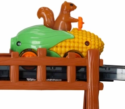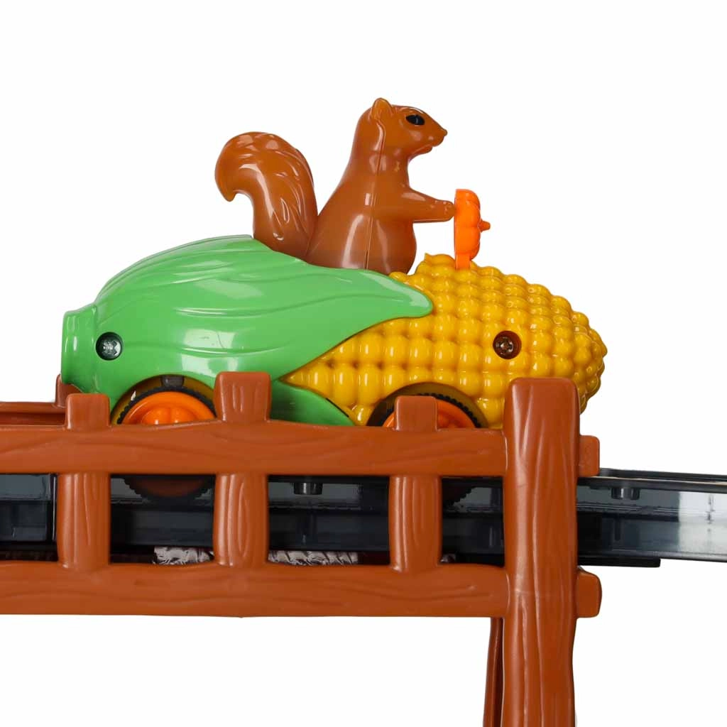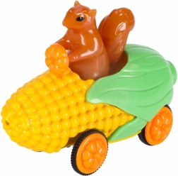 Prisrčen avto v obliki koruze z voznikom veverico prinaša v igro barve in svetlobo. Odlična motivacija za male dirkače in večerne vožnje.