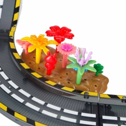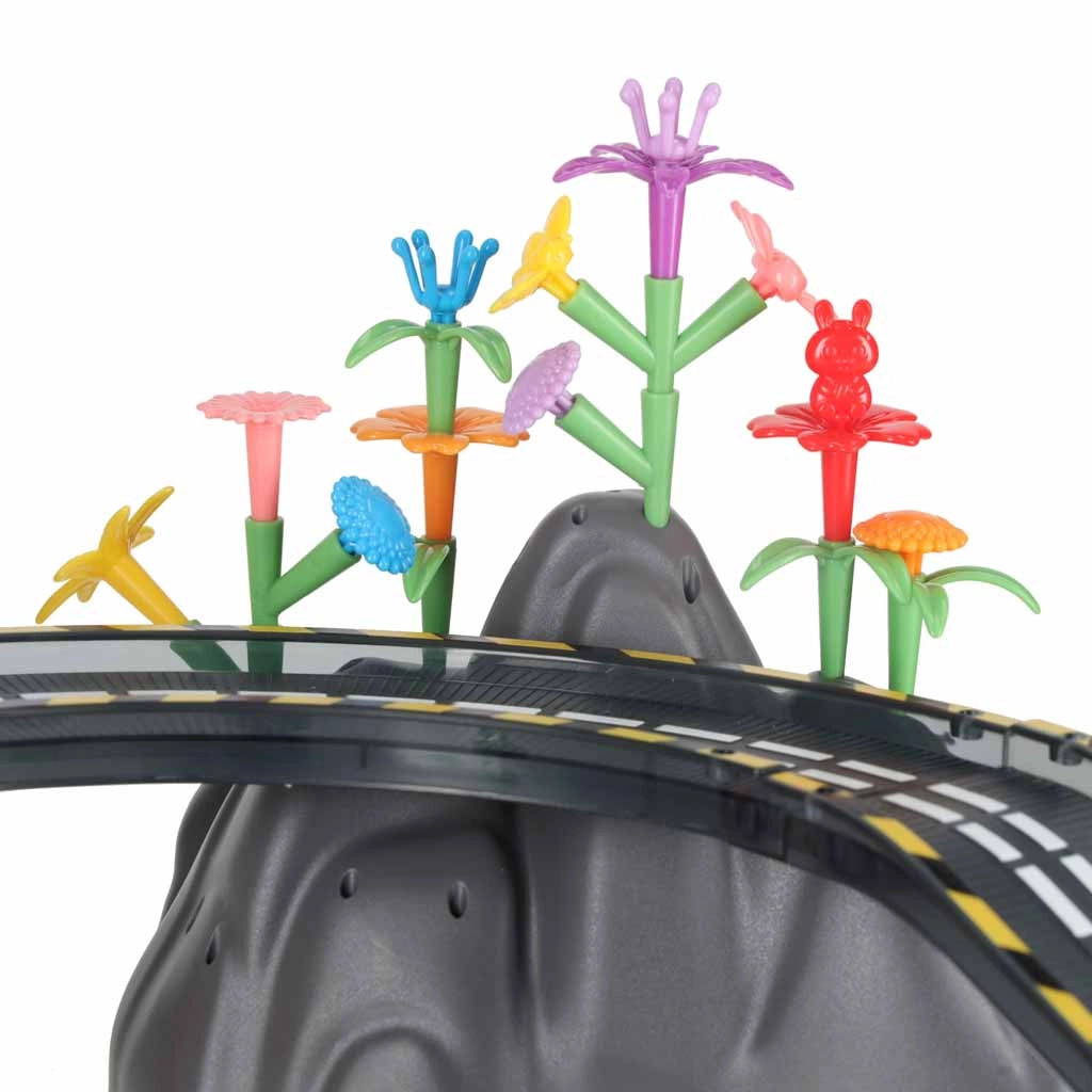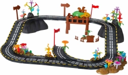 Gre za izobraževalno igračo, ki naravno razvija kreativnost, logično razmišljanje in sposobnost načrtovanja. Vsaka nova postavitev je nova zgodba – otroci lahko dodajajo rože, drevesa, ograje, skale in zastavice ter ustvarijo izvirno okolje za dirkalne vožnje.
