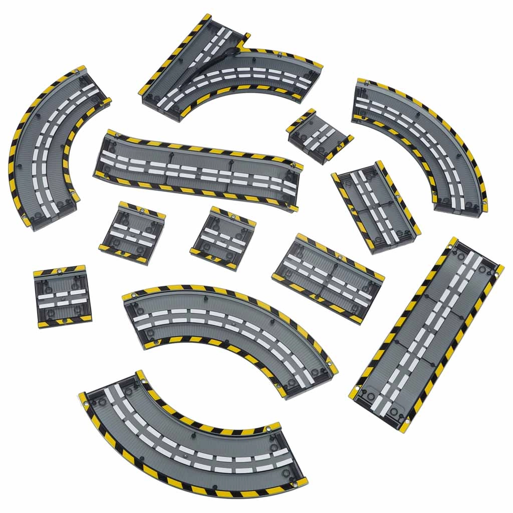 - 153 delov za gradnjo raznolikih stez in scen