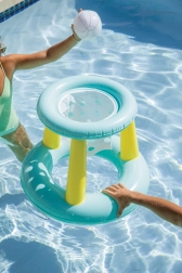 Uživajte v urah zabave v vodi z napenljivim košem za košarko v bazenu. Plavajoča osnova z dvema obročema in tremi rumenimi stebri zagotavlja stabilnost na gladini, medtem ko bela mrežica zanesljivo ujame žogo. Odporen PVC material je prijeten na dotik in enostaven za čiščenje.