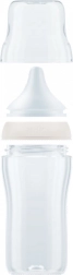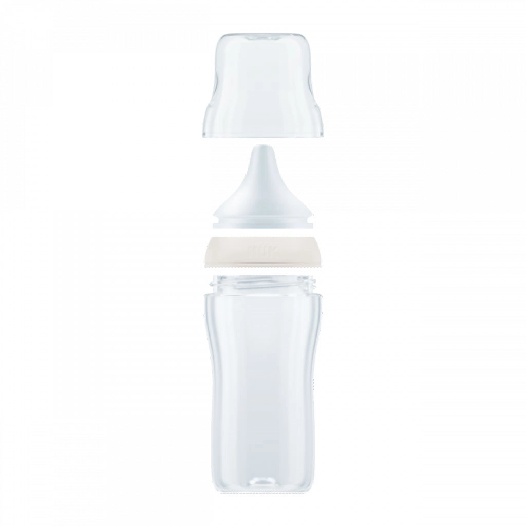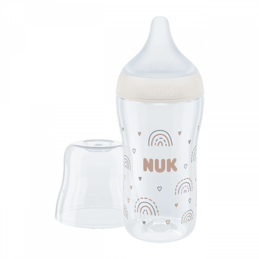 Steklenička NUK Perfect Match posnema naraven občutek dojenja – ima poseben ortodontski oblikovan cucelj po vzoru materine bradavice, dovolj prostora za gibanje jezika in čeljusti ter široko oporo za ustnice, ki spominja na mamino kožo. Zahvaljujoč izboljšanemu Anti Colic Air System je pretok mleka naraven in umirjen, zato dojenček pije sproščeno brez nepotrebnega požiranja zraka.